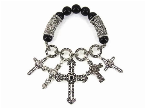 This bracelet features 5 beautiful unique highly detailed Crosses with black and silver plated to match the large black beads with detailed silver collars. A contemporary look with a powerful Christian theme. Comes in a beautiful satin lined gift box with a satin ribbon and bow, no wrapping required.