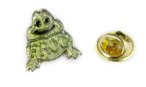This is a cool lapel pin from back in the 80's! It has a green glitter body with a polished silver tone finish and the letters F.R.O.G. which stands for "Faithfully Rely On God". A great gift for your friend or loved one that is struggling with their faith or just needs a little encouragement. Comes in a pretty little gift box.